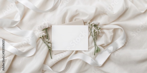 wedding, card, flower, white, ribbon, blank, table, paper, elegant, blanket, empty, stationery, floral, background, vintage, birthday, minimal, romantic, message, design, fashion, frame, love, beauty, template, invitation, celebration, lifestyle, desk, holiday, topview, modern, bed, beautiful, anniversary, natural, textile, pastel, decoration, still life, feminine, marriage, rustic, greeting, blog, copy space