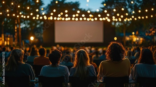 Outdoor Movie Night with Friends Watching Film Under the Stars