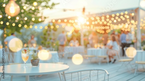 Outdoor networking event, leaders observing candidate interactions, golden hour lighting, wide-angle lens, vibrant and engaging, high resolution