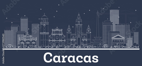 Outline Caracas Venezuela City Skyline with White Buildings.