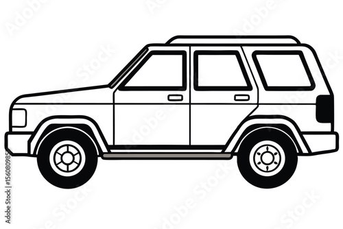 suv, car, vehicle, automobile, transportation, offroad, classic, vintage, outline, illustration, automotive, design, drawing, tire, wheel, door, side, transport, retro