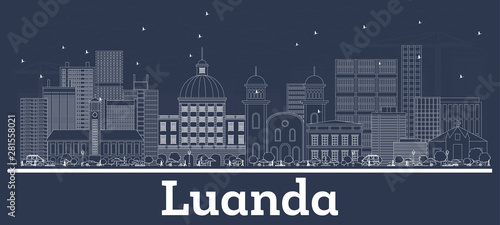 luanda, skyline, angola, outline, building, city, architecture, art, background, blue, business, city landscape, contour, destination, district, downtown, finance, financial, graphic, horizontal, house, illustration, landmark, landscape, line, linear, metropolis, modern, panorama, people, sightseeing, silhouette, structure, taxi, thin, tour tourism, tower, travel, tree, urban, view, white