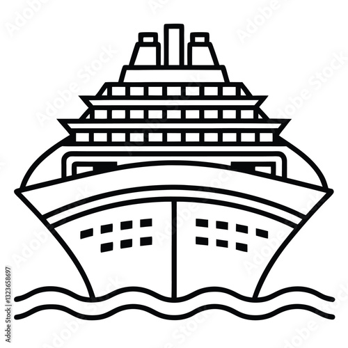 Outline Ship Liner Cruise Icon – Vector Sign Symbol for Travel, Marine, and Nautical Design, Outline Cruise Ship Icon, Ship Liner Vector Symbol, Marine Travel Outline