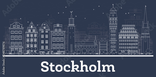 Outline Stockholm Sweden City Skyline with White Buildings.