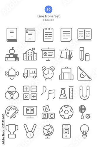 bulb, soccer, computer, physics, trophy, succeed, pallet, art, magnet, science, music, mathematic, calculating machine, set, setsquare, ruler, bag, clock, alarm, bus, bell, eraser, crayons, presentation, board, building, apple, paper, file, memo, notebook, note, book, thin, concept, web, education, school, collection, outline, isolated, linear, signs, symbol, illustration, design, vector, line, icon