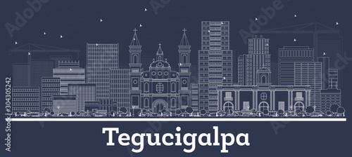Outline Tegucigalpa Honduras City Skyline with White Buildings.
