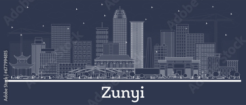 Outline Zunyi China city skyline with white buildings. Business travel and tourism concept with historic architecture. Zunyi cityscape with landmarks.