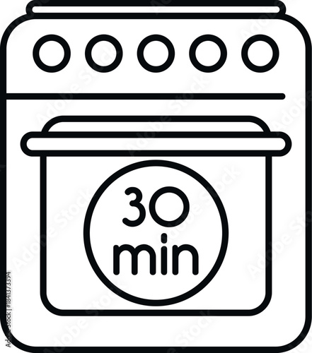 oven, icon, timer, cooking, kitchen, baking, appliance, 30, minute, line, art, cookout, stove, cook, food, heating, prepare, receipe, duration, time, countdown, minute, schedule, domestic, household, electric, gas, modern, graphic, symbol, outline, minimalist, black, white, simple, flat, web, app, user, interface, design, illustration, vector, meal, eatery, cafes, home, eat