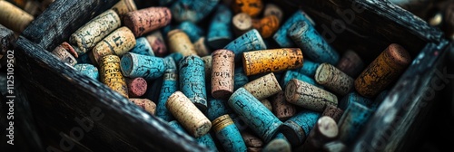Overflowing Rustic Crate A Collection of Used Wine Corks Representing Celebration and Flavor