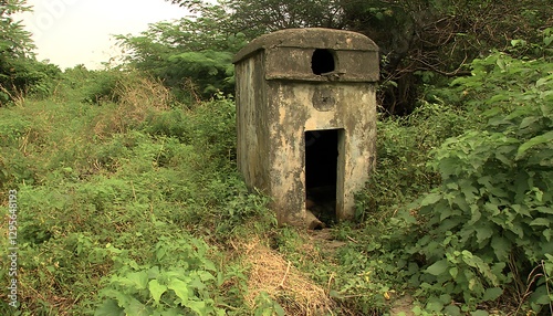 structure, stone, rural, overgrown, building, abandoned, old, weathered, derelict, ancient, ruin, forgotten, mystery, secluded, countryside, vegetation, plant, bush, tree, foliage, field, path, doorway, entrance, window, hole, dilapidated, damaged, crumbling, desolate, remote, hidden, landscape, nature, exterior, architecture, history, archaeology, exploration, discovery, investigation, enigma