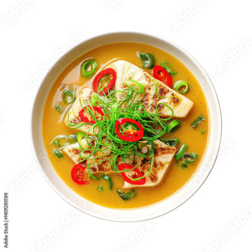 soup, tofu, asian, food, bowl, grilled, scallion, chili, pepper, transparent, cookery, healthy, eating, dish, meal, lunch, dinner, vegetarian, vegan, spicey, delicious, epicure, eatery, culinary, fresh, ingredient, plate, isolated, white, background, overhead, shot, photo, cooking, diet