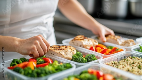 meal, food, healthy, nourishment, diet, container, lunch, dinner, chicken, grilled, vegetable, broccoli, pepper, salad, grain, fresh, balanced, eat, eating, cooking, homemade, lifestyle, well-being, wellness, fitness, exercise, routine, organisation, planning, kitchen, appliance, table, indoor, workspace, desk, office, workplace, portion, balanced diet