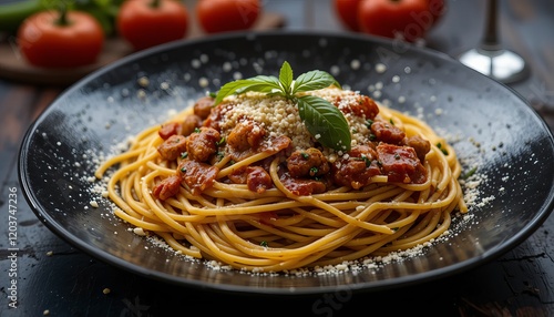 pasta, dark, overhead, sauce, spaghetti, italian, plate, food, black, up high, dinner, meal, table, receipe, dish, flat, lay, epicure, red, cooking, tomatoes, background, meat, cooked, top, cheese, view, lunch, beef, parmesan, cookery, shot, eatery, bolognese, fresh, delicious, mediterranean, minced, pork meat, macaroni, rustic, garlic, cream, traditional, tasty, kitchen, culinary