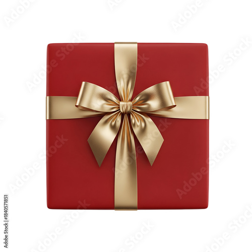 gift, box, present, red, gold, ribbon, bow, top, view, festive, holiday, celebration, surprise, wrapped, cardboard box, square, object, event, occasion, studio, isolated, background, nobody, simple, bright, vibrant, colours, decor, decoration, seasonal, giving, greeting, classic, luxury, elegant, beautiful, metallic, christmas, birthday, wedding, anniversary, stylish, christmas