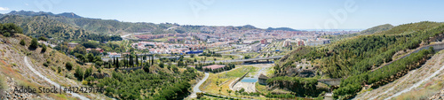 overview, málaga, panorama, nobody, mountain, mediterranean, house, dam, city, andalusia, aerial, tree, spain, sea, road, panoramic