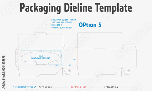 Packaging Dieline Template. 2D Technical Drawing File Eps Scale. Fully editable vector. Prepared for production