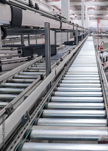 packing line in a logistics warehouse. conveyor belt in a modern production line