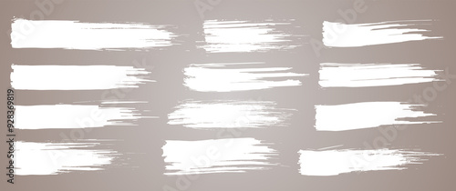 Paint brush. White ink grunge brush strokes. paintbrush set. Grunge design elements. Painted ink stripes. Creative isolated spots. Ink smudge abstract shape stains and smear set