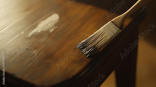 Painter applying a protective coat of varnish on wood furniture. Care and finishing