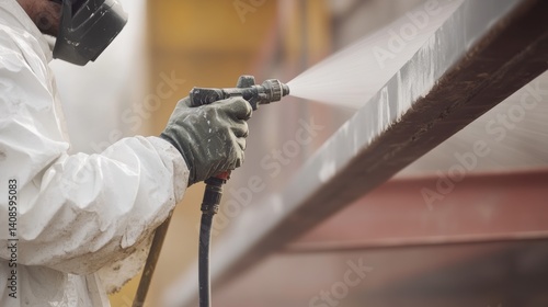 painter, applying, protective, coating, steel, structure, construction, site, safety, skill, industrial, painting, infrastructure, wearing, respirator, glove