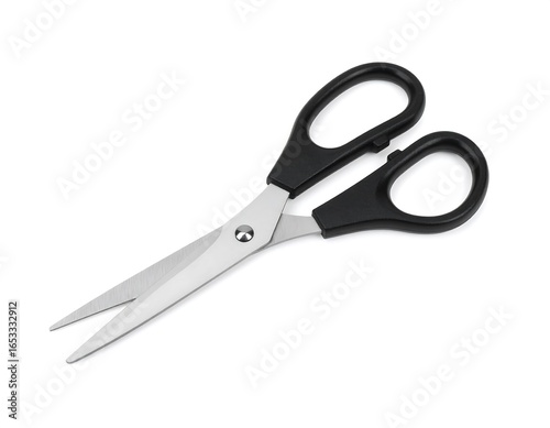 Pair of black-handled scissors on white background
