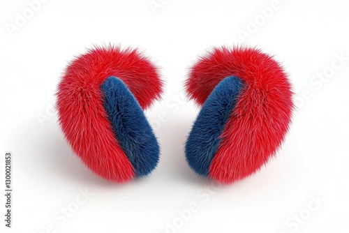 earring, red, blue, fluffy, fashion, accessory, jewellery, hand-made, intricate, design, textile, colourful, detail, studio, closeup, accessory, earring, geometric, symmetric, unique, decorative, trendy, statement, art, decoration, beautiful, modern, shot, white, background, pair, of