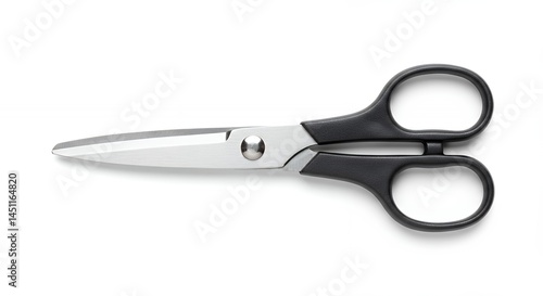 scissors, blade, handle, silver, black, plastic, tool, cut, object, isolated, overhead, top, view, white, background, product, equipment, kitchen, household, accessory, metal, image, photo, still, life, photo, display, copy, space, close, up, design, simple, domestic, practical