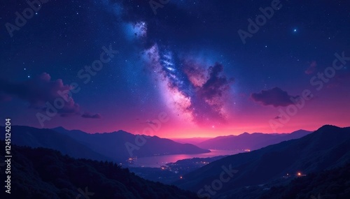 paisaje nocturno con estrellas multicolores y cielos luminoso, lente, paisajes nocturnos