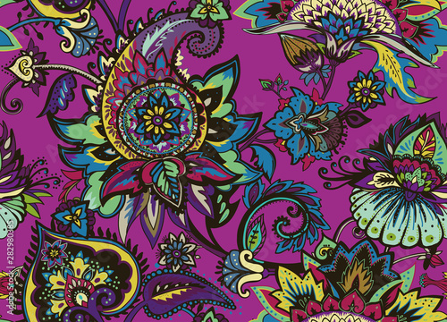 Paisley. Seamless Textile floral pattern with oriental paisley ornament.