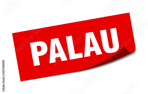 palau, sticker, three-dimensional, badge, banner, buttons, destination, hugs, flier, greeting, isolated, label, location, note, notice, paper, peeler, red, seal, signs, square, tags, template, travel, white background