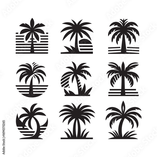 Palm Tree Icon Set — Tropical Silhouette Vector and Logo