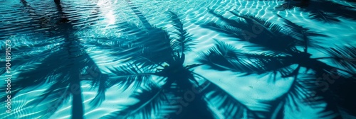 palm, tree, shadow, blue, water, background, lagoon, coral, sand, island, tree branch, beach, pattern, ocean, wave, sunlight, shadow, banner, foliage, tropics, plant, silhouette, pool, generative, ai, illustration, palm tree, texture, copy space, copy space, summer, luxury, hotel, hawaiian, leaf, coconut, tropical, sun, shade, resort, vacation, paradise
