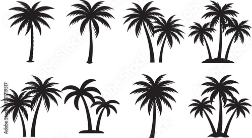palm, tree, beach, tropical, vector, island, summer, nature, silhouette, illustration, sun, sea, travel, coconut, leaf, landscape, ocean, palm tree, design, art, sand, vacation, plant, holiday, paradise
