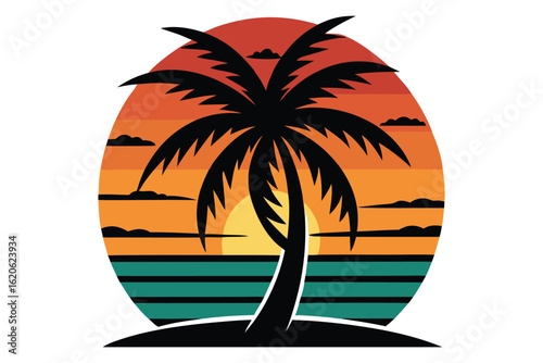 Palm tree sunset sticker style
