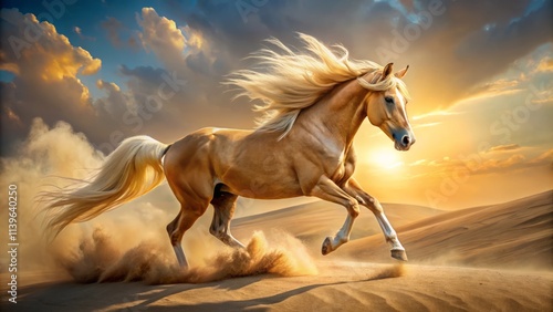 desert, sand, dust, galloping, aerial view, equestrian, photo, motion, dynamic, majestic, wild, free, nature, animal, equine, landscape, sandy, sun, sunlight, golden hour, power, speed, beauty, elegance, spirited, thoroughbred, fast horse, mare, desert landscape, golden light, vibrant, breathtaking, animal portrait, natural light, dramatic