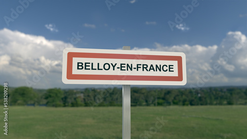 Panneau de la ville de Belloy-en-France. Entrée dans la municipalité.