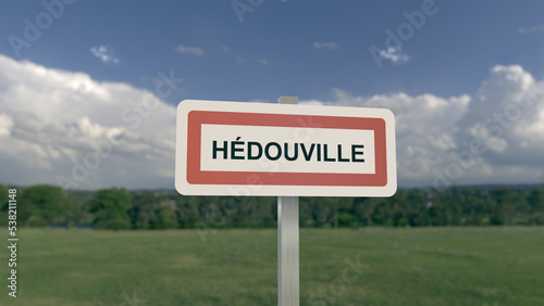 Panneau de la ville de Hédouville. Entrée dans la municipalité.