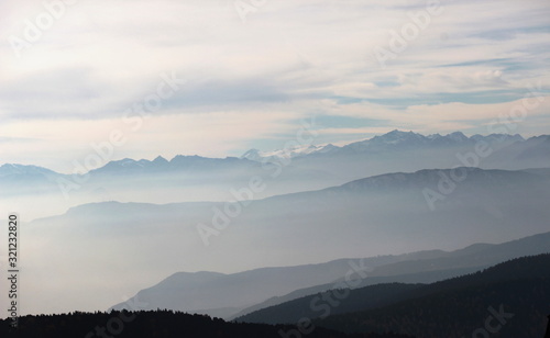 mountain, countryside, sunset, heaven, nature, fog, sunrise, blue, mist, hill, morning, cloud, view, sun, winter, evening, beautiful, vale, foggy, distance, contemplation, stillness, relax