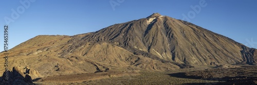 Panorama during the ascent to Alto de Guajara, 2715m, over the Teide National Park, Parque Nacional del Teide, to Pico del Teide, 3715m, at sunrise, Tenerife, Canary Islands, Spain