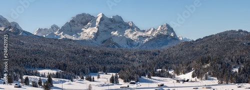 Panorama Landschaft in Bayern mit Zugspitze im Winter