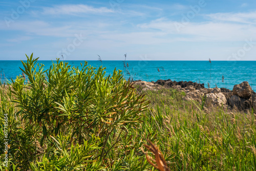 sea, seascape, water, blue, colours, mediterranean sea, beach, rock, coast, coastline, shore, shoreline, wave, grass, promenade, travel, trip, journey, vacation, holiday, background, beautiful, nature, green, sky, cloud, flower, spring, sicilia, italy, europa, agrigento, landscape, scenery, panorama, view, pier, sand, tour tourism, sightseeing, landmark