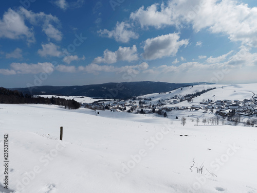 Panoramaweg - Gersbach im berg in Winter. Blick auf das dorf aus dem Rohrenkopf