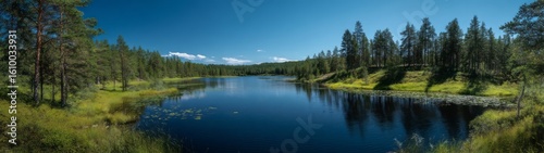 Panoramic hdr landscape photography of serene lake in nature 360 degrees viewpoint