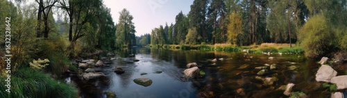 Panoramic hdr nature scene forest river 360 degree