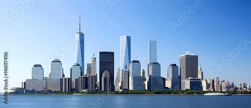 skyscraper, city landscape, city landscape, architecture, modern architecture, city view, panoramic view, daylight, blue skies, waterfront, river, harbor, building, urban scene, business district, tall building