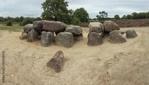stone, rock, low, construction, panorama, dolmen, megalithic, tomb, outdoors, nature, scenic, famous, place, landmark, tour tourism, travel, destination, popular, tranquil, picturesque, photogenic, charming, archaeology, archaeology, prehistoric, social, burial, settlement, monumental, grave, sacrifice, holland, landscape, horizontal, no people