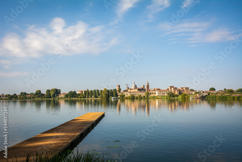 Panoramic view at the medieval City of Mantova (Mantua) with Lake (Lago di Mezzo) - Italy