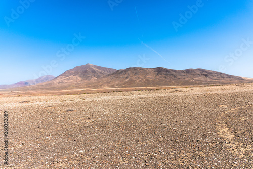 Panoramic view desert region Playa Blanca Papagayo - White Beach Papagayo, - at volcanic island Lanzarote, Canary Islands, Spain. Travel vacation concept.