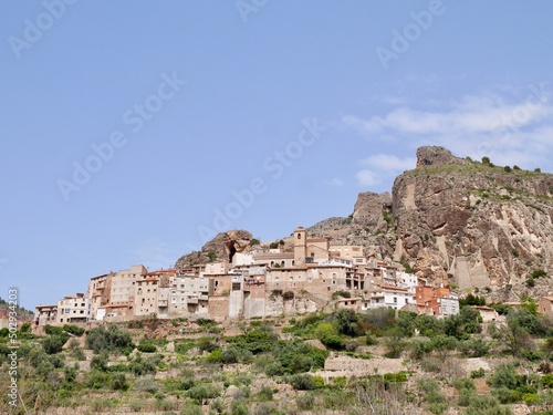 Panoramic view of Ayna, charming town nestled in the Sierra mountains. Castile La Mancha, Spain.