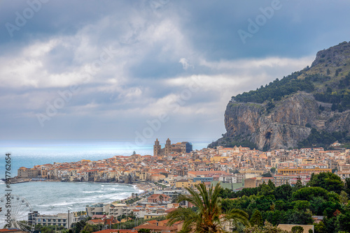 Panoramic view of Cefalù, province of Palermo, Sicily, Italy